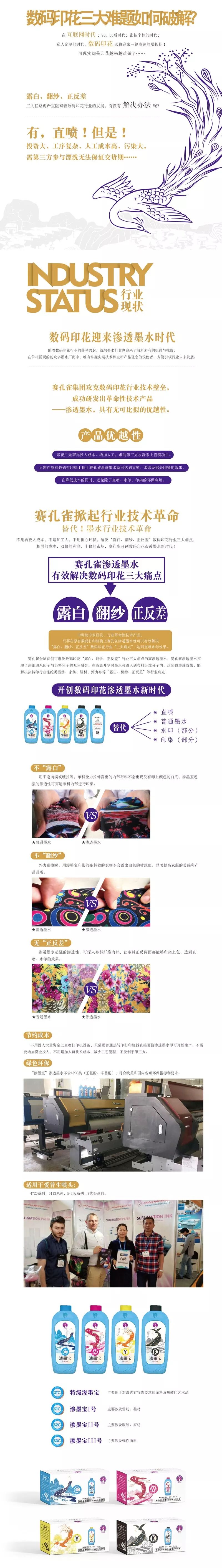 渗透墨水,在广州目前已有50多个厂家购买并打印使用。因为其渗透效果强,客户反馈一致好评!各位都知道直喷和水印,生产成本都比较高!而且交货期很长。现在只需要换一款渗透墨水,就可以实现热升华转印出直喷和水印的效果,那你还在犹豫什么呢?